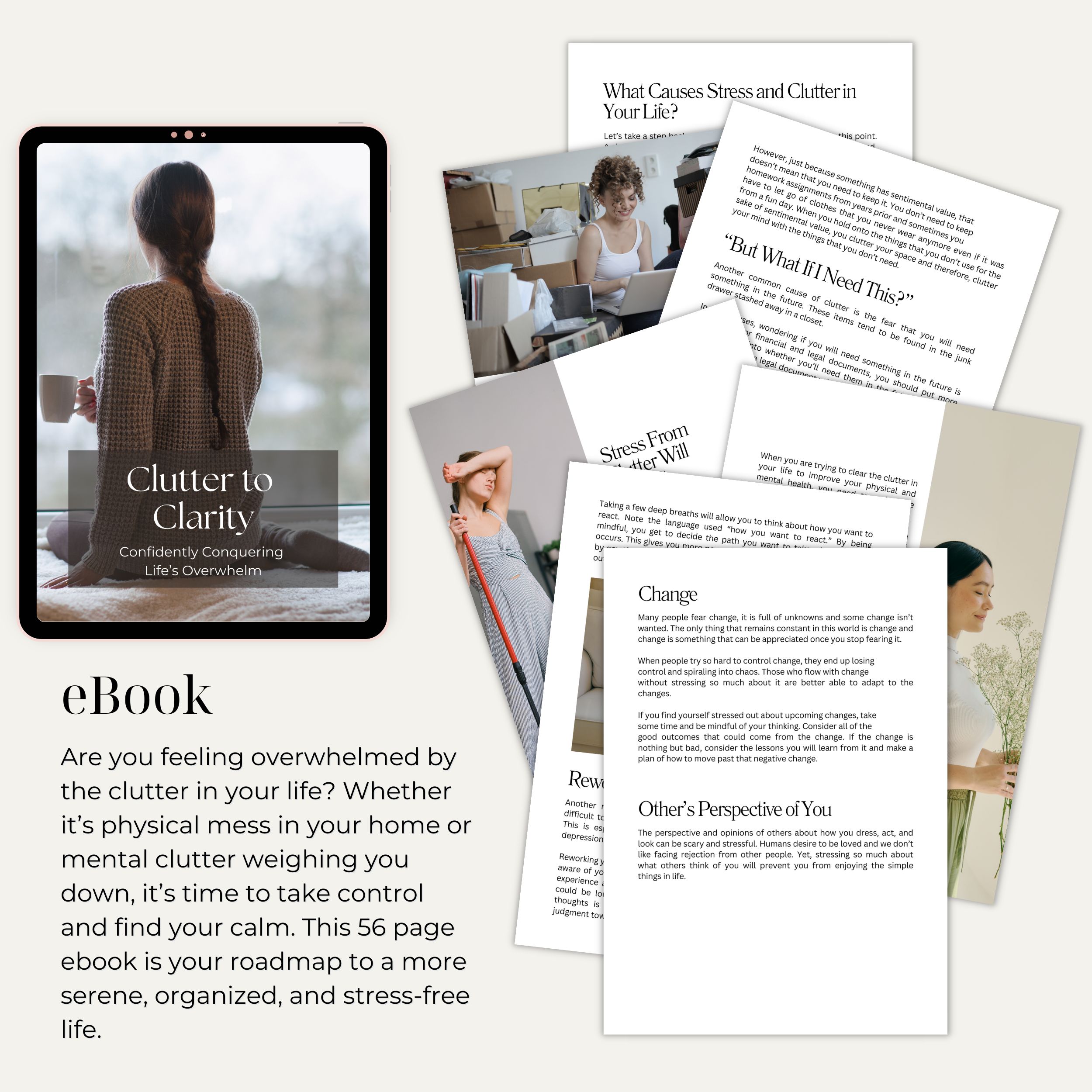 Inside you’ll learn how clutter impacts stress, how to declutter your space and your thoughts, and how to use simple mindfulness and journaling techniques to create a calmer, more organised life.