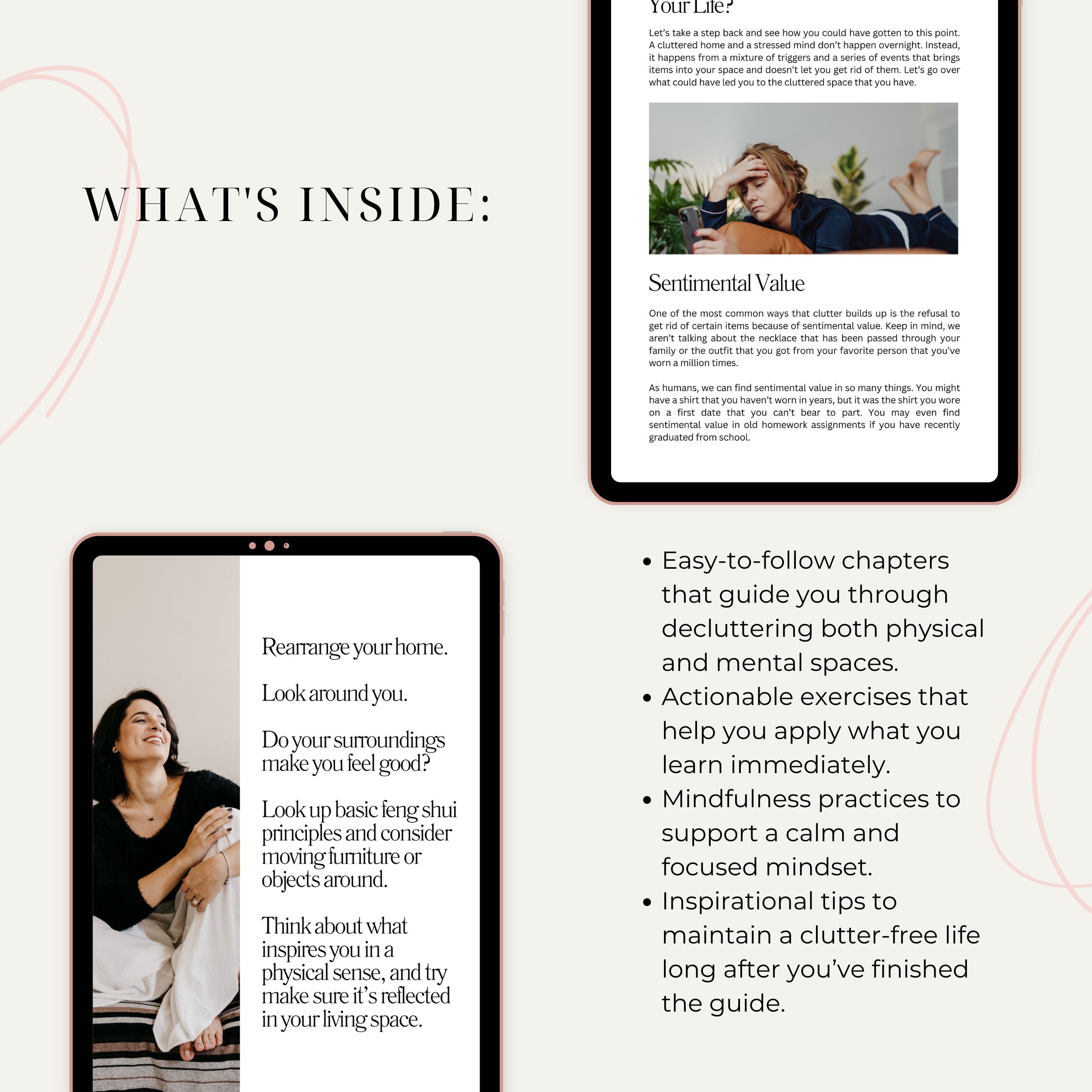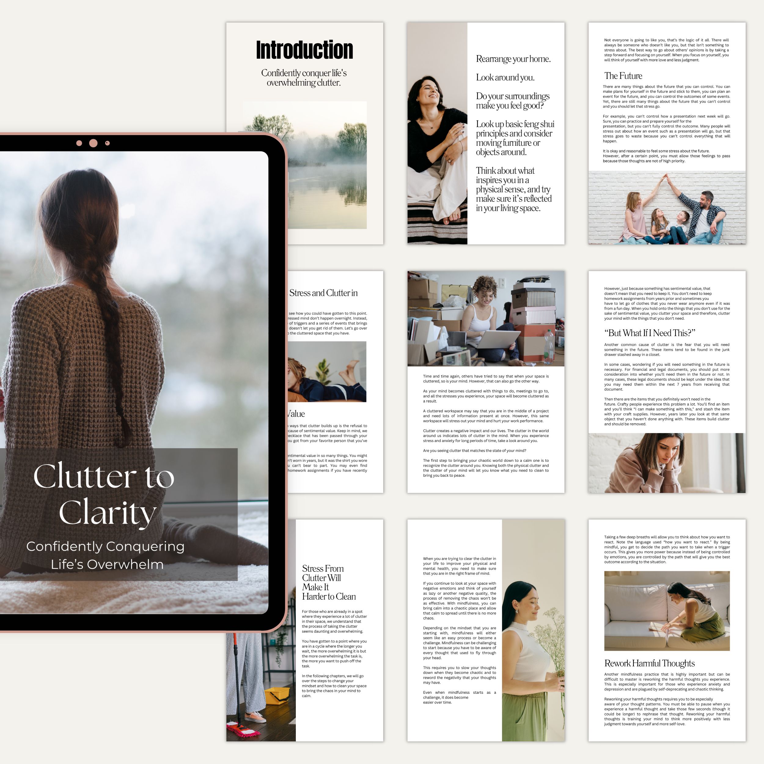 The guide explores how physical clutter and mental clutter often mirror each other, and how awareness, mindfulness, and simple habits can help restore balance.
